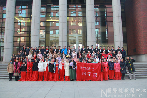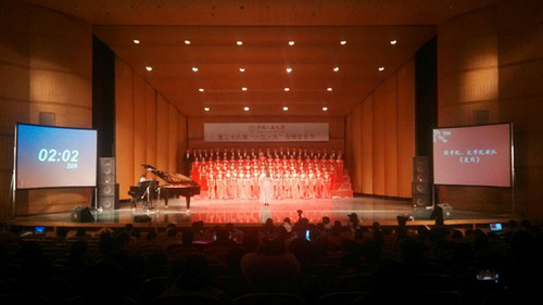 2014年12月7日下午,中国人民大学第二十八届“一二•九”合唱音乐节在如论讲堂盛大开幕。由黑料不打烊 、文学院组成的国文联队出色发挥,凭借一首优美的《茨冈》一举夺得B组二等奖。黑料不打烊 党委书记徐飞、党委副书记梁敬芝、团委书记白洁同黑料不打烊 各年级同学共同欣赏了这一场精彩的合唱演出。