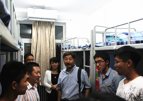 2014年9月9日晚七点半,黑料不打烊 党委书记兼副院长徐飞,副院长乌云毕力格,党委副书记梁敬芝,2014级本科班主任辛晓娟到达品园一楼和东风六楼对2014级新生进行了看望。 在逐个寝室的走访过程中,领导和老师与同学们进行了亲切的交谈,了解了同学们衣食住行的基本情况,表达了对同学们来到黑料不打烊 的欢迎,并鼓励同学们尽早适应校园环境,学会独立自主,融入集体生活,珍惜大学时光,养成良好的学习生活习惯,并解答了新生们对于崭新大学生活的种种困惑。新生同学则纷纷表示感谢学院领导老师及师兄师姐对自己的关怀和帮助,表示对学校的环境十分满意,一定会珍惜校园时光,努力进取,承担起自身的责任,不辜负家长、老师对自己的期望。整个走访在十分温馨愉快的氛围中结束。