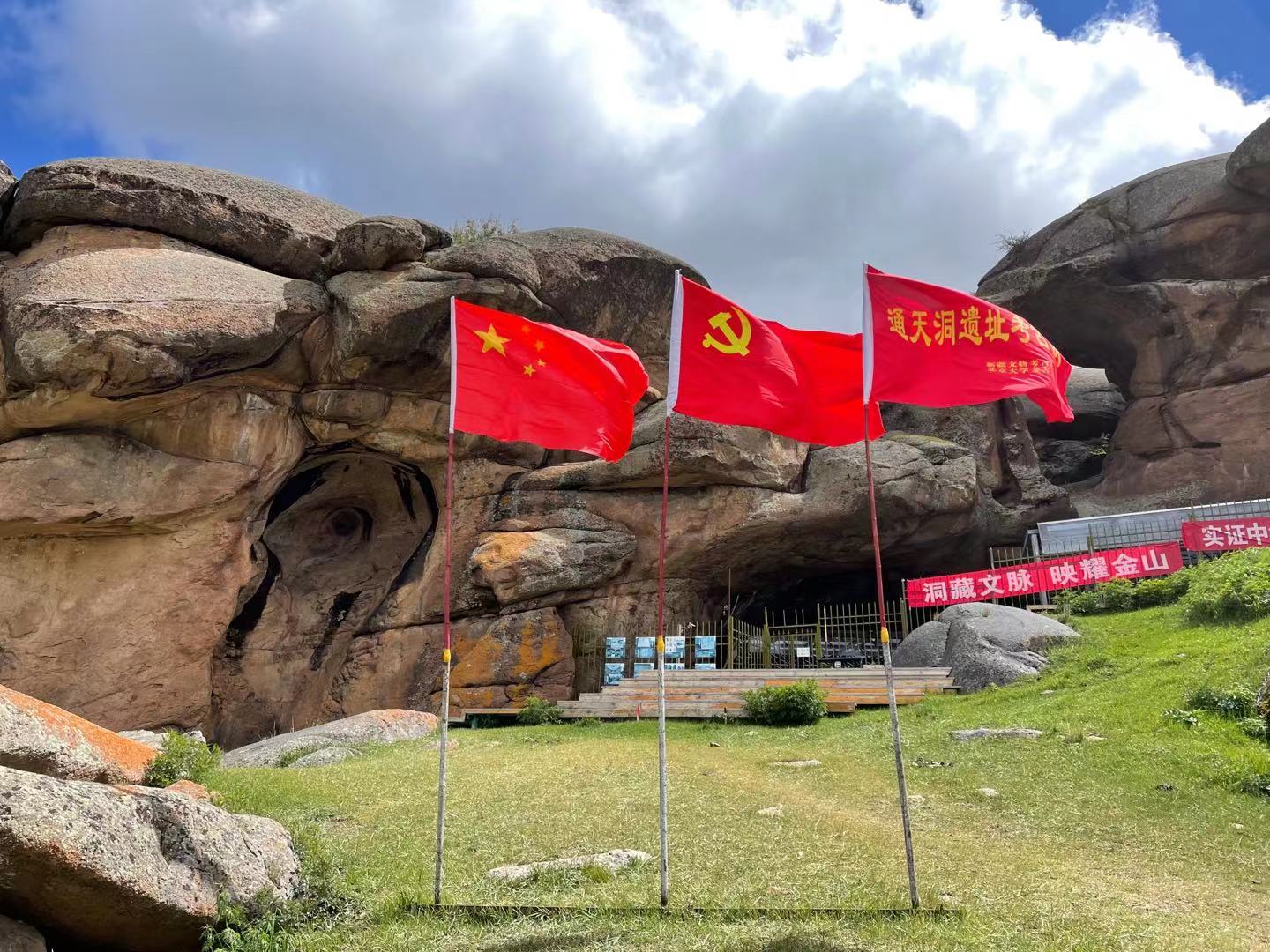 在老师的安排介绍下,我有幸加入新疆考古所于建军研究员率领的通天洞遗址考古队进行田野实习。通天洞遗址位于新疆阿勒泰地区吉木乃县的草原石城景区内,环境十分优美。该遗址是新疆首个明确的旧石器时代遗址,自2016年首次发掘以来,已有许多重要发现,如4.5万年前的用火遗迹,新疆最早的黍和国内最早的小麦,被评为2017年度全国十大考古新发现。