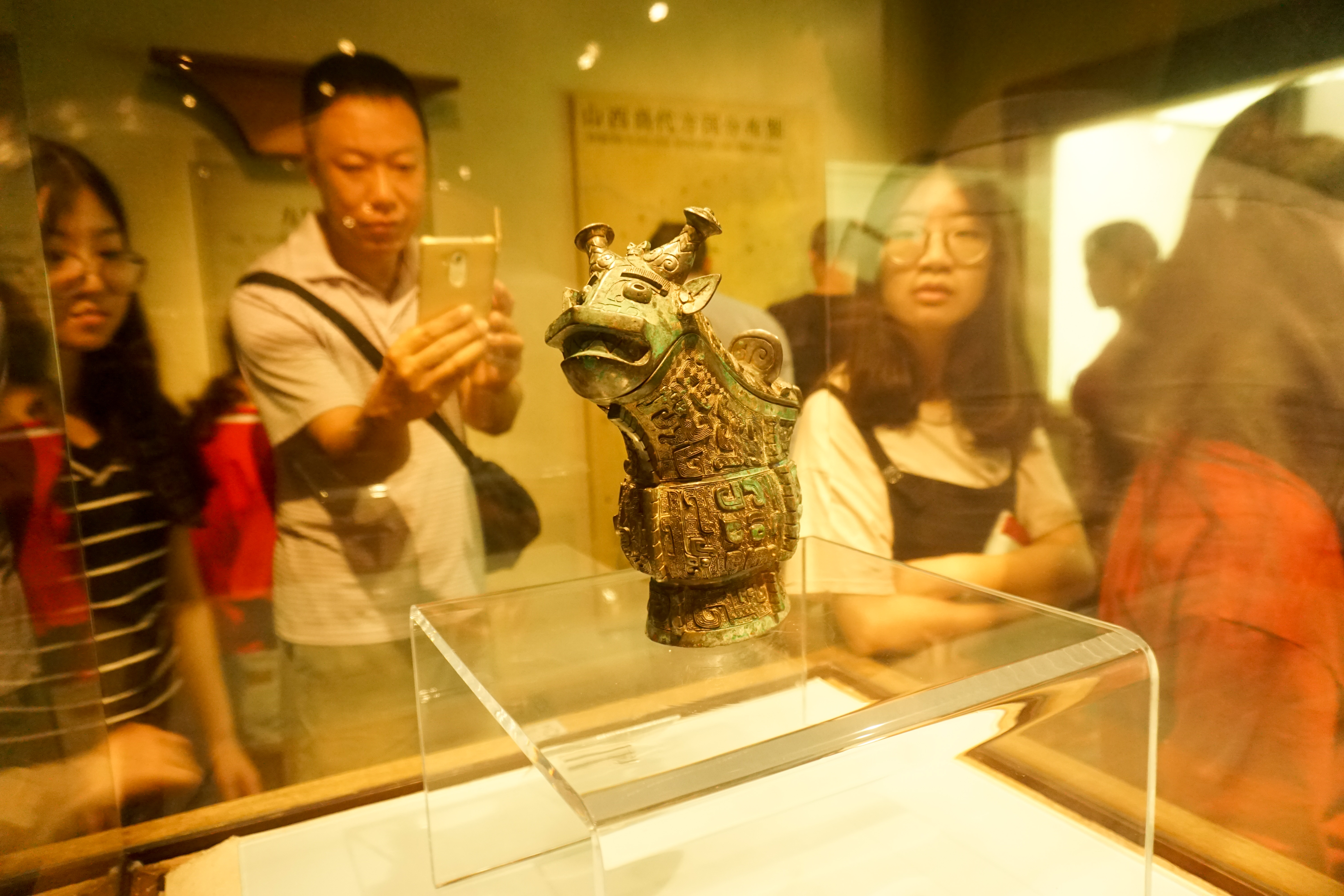 在徐显秀墓,我们对这座经考古发掘后进行原址保护的壁画墓进行了实地考察,与墓室及墓道壁画中的车马出行图和夫妇宴饮图进行了“零距离接触”,太原北齐壁画博物馆王馆长也对该墓的发掘与保存、壁画的保护措施及徐显秀墓壁画的艺术特色等进行了讲解,并与前来学习的师生就壁画构图、壁画墓原址保护的技术等问题进行了讨论。翌日,王馆长又陪同我们参观了山西博物院,并重点对博物馆所藏的中古时期墓室壁画与相关艺术进行了介绍。此外,博物院展出的两周时代青铜器、中古时期的佛教艺术与外来文化代表性器物也吸引了师生们的注意,很多以前在课堂上只能通过照片了解的文物,如晋侯鸟尊、鸮卣等,如此近距离地出现在面前,更显生动;北齐娄叡墓壁画则通过博物院按照发掘时的原貌搭建起一个立体空间,使观者有身临其境之感。