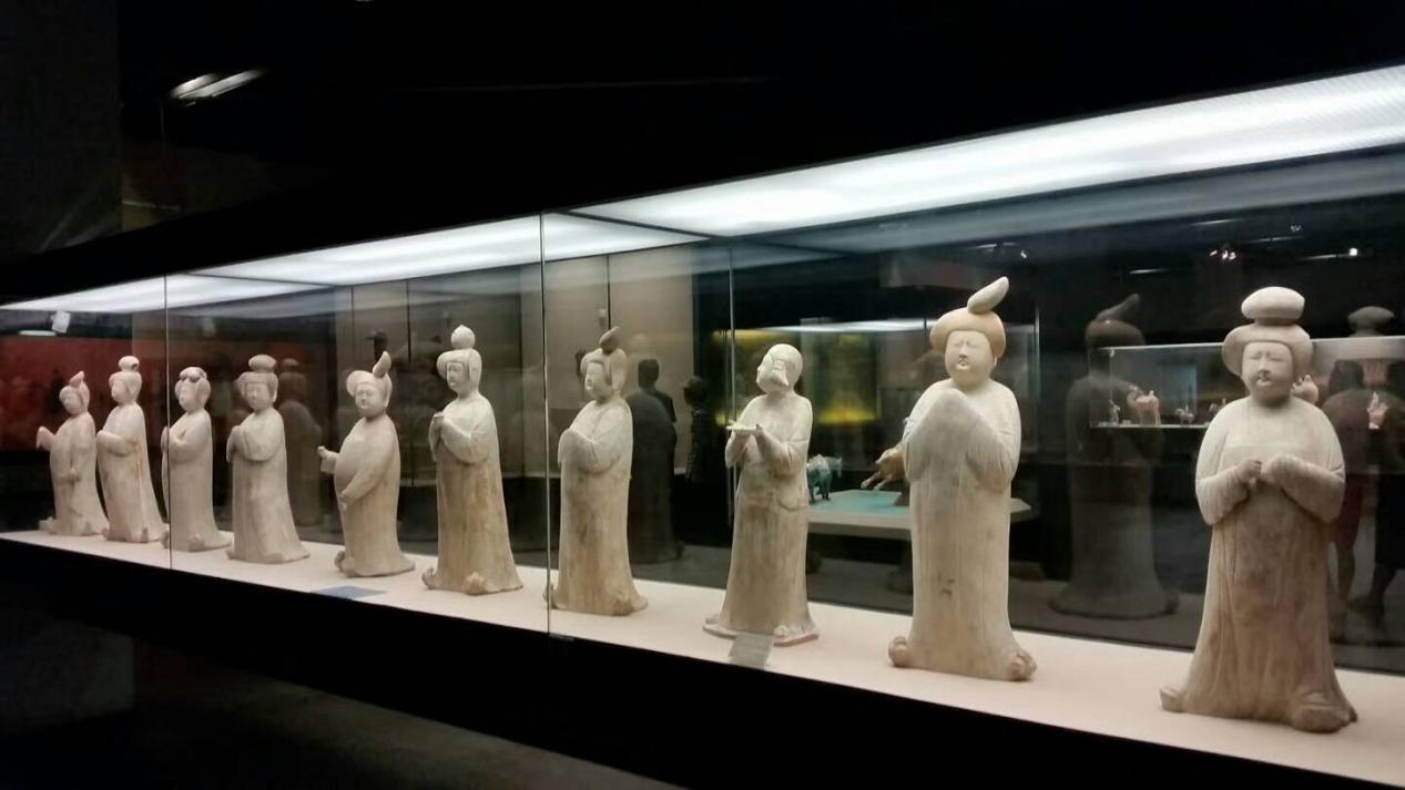 西安市博物馆,坐落在小雁塔园林之中,是西安市考古所的博物馆。其中的佛像展览让人印象深刻,一尊尊精致的佛像,汉魏隋唐逐渐汉化造像的风格,佛像上一个个精小的刻字,让我们看到佛教在中国的发展变化以及繁荣之景。还有一排侍女陶俑,十分醒目。这些侍女各个高大健硕,态度傲娇,根本看不出侍女的样子,完整形象的时代主人。