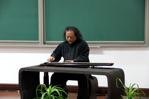 学术活动季正有条不紊的展开,2014年10月29日下午,学术活动季第三场讲座在国学馆226举行,当代斫琴与演奏兼善的著名古琴艺术家、钧天坊创始人王鹏先生为到场学生和嘉宾带来题为《琴无古今》的精彩讲座。讲座开始前,会场已座无虚席,同学们和众多慕名而来的古琴爱好者们均翘首以盼王先生的到来。  “琴从远古走到今天,承载了中国传统文化的思想内涵。”王鹏老师从讲座的主题“琴无古今”讲起,并引用白居易《船夜援琴》的诗句“鸟栖鱼不动,夜月照江深。身外都无事,舟中只有琴。七弦为益友,两耳是知音。心静即声淡,其间无古今。”对讲座主题加以诠释。随后王鹏先生抚琴一曲,让在场观众感受“落雁迎佳客,流水遇知音”的欣喜和舒畅。 首先,王鹏先生向大家介绍琴器、斫琴的古法和创新。谈起古琴的制作和起源,王鹏先生对他精选的五十多种传统古琴样式和制作方法如数家珍、一连举出伏羲式、神农式、仲尼式等多种样式。随后,先生讲述了伏羲式古琴的传说。“移风易俗莫过于乐”,小小的一张琴,却是包含着古人对自然、对宇宙、对人生的精辟理解和处世哲学。 接下来,王鹏先生向大家介绍古琴制作的材料。他分析了桐木、梓木、杉木等木材的特性,并分析了古琴各部分的功能,指出“古琴的优美音色是不同材料间振动和抑制的结合”,“要制作一张出色的琴,就需要选择一松一硬两种不同性质的木材”。之后,他还详细讲述了不同琴弦、琴型和结构各自的由来和代表意义,指出人和琴的关系就是人和自然的关系,琴的材料集中体现了中庸之道。王鹏先生无时无刻不把古琴和中庸之道相结合,为在场观众理解古琴、提高琴艺打开了一道新的大门。王鹏先生还向大家展示了自己设计制作的创新古琴样式。在场观众聚精会神,被古琴优美的外形所吸引。 随后,王鹏先生详细分析了古琴五音的属性,分享了自己对五音的理解,他认为声音是一种能量,源于其五行的属性。“音乐者,所以动荡血脉, 流通精神而和正心也。”王鹏先生引用司马迁《史记•乐书》,再次说明了古琴声音的能量能与身体产生共振,得以修身养性、潜移默化影响人的心灵和情志。琴音调而天下治,更说出了琴音感化人心、调和社会的作用。 接下来,王鹏先生谈到古琴文化的当代传承,指出传承不能一味复古,穿着汉服、坐在古建筑家居中弹琴的时代也已过去。真正应该传承的,是古琴文化的美学精神和思想内涵。王鹏先生阐述了自己运用现代设计手法诠释传统美学元素的艺术理念,与大家分享了自己设计生活美学空间的灵感和成果,同时展示了他创立的钧天坊园区空间,及其钧天云和乐团到世界各地演出的舞台布景。他说,“中正平和”的思想是指导人们在当下与未来世界的生存智慧,应该与世界分享,而这也正是古琴“无古今”之别、超越古今的核心精神。在场观众对此报以热烈的掌声。 讲座的最后,王鹏先生对全体黑料不打烊