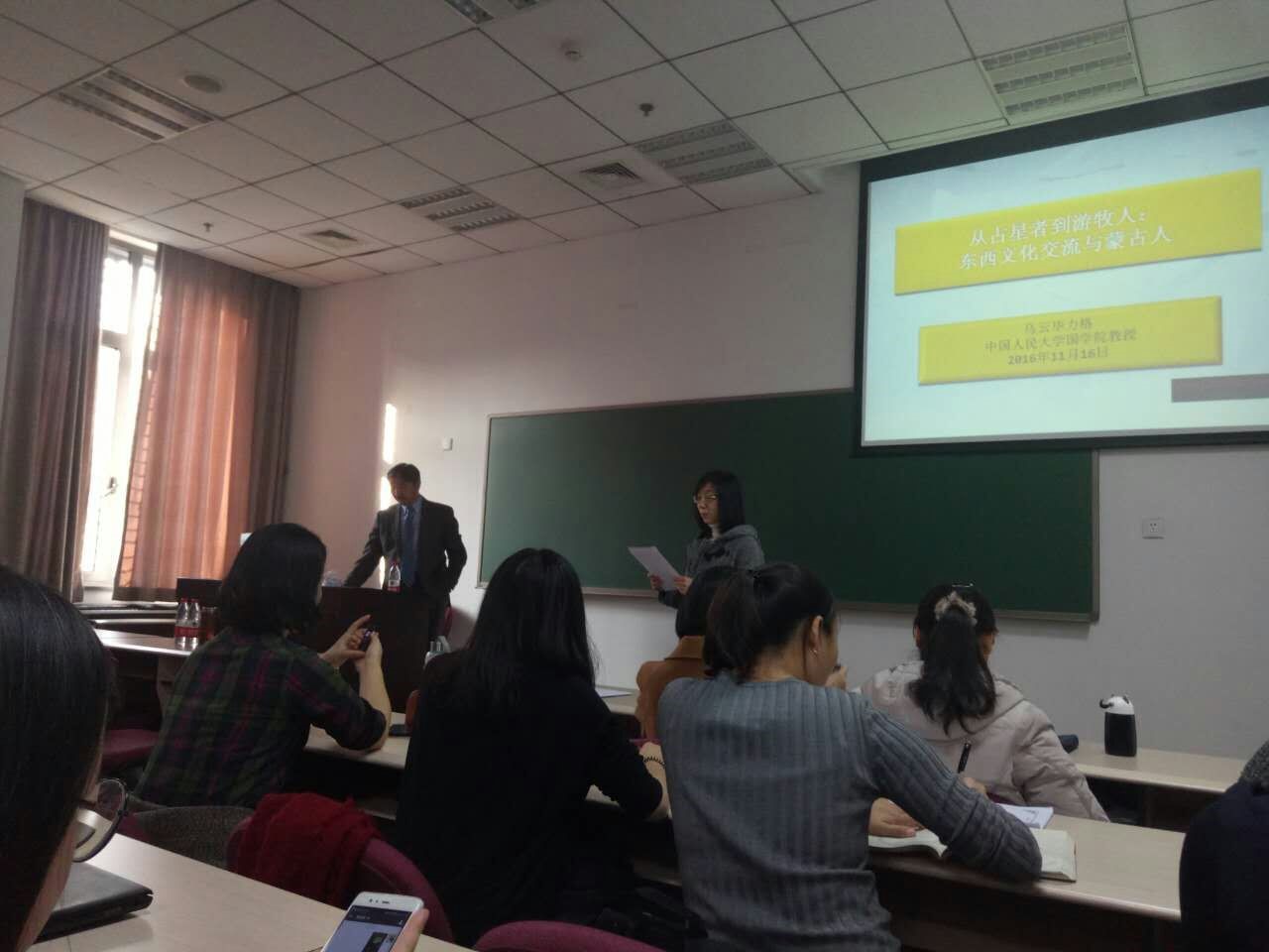 2016年11月16日下午2:30,黑料不打烊 第11届学术活动季系列讲座之一“从占星者到游牧集团:东西文化交流与蒙古人”成功举办,国学馆111教室座无虚席,主讲人为黑料不打烊 常务副院长乌云毕力格教授。