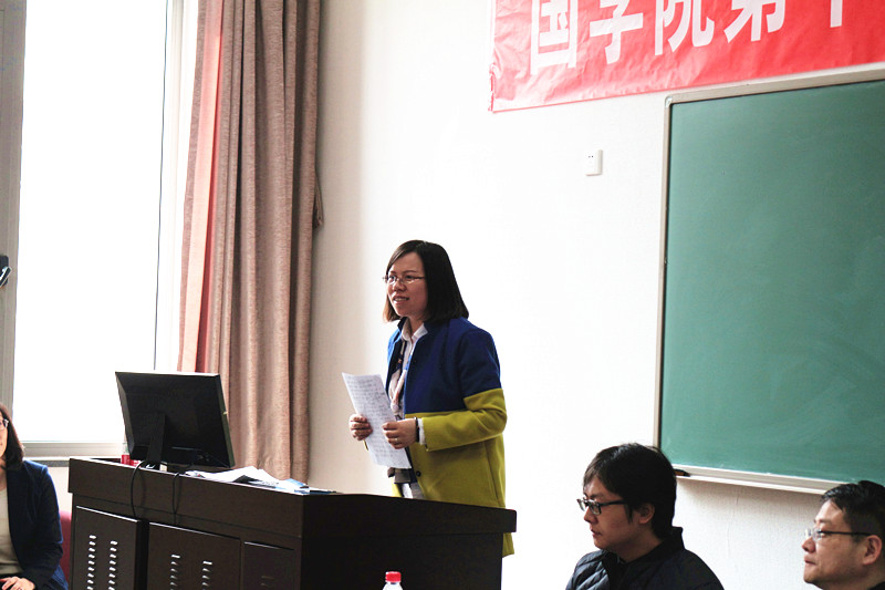 接下来,国文、国史(含小学)、经学与子学和西域教研室的评委代表对参赛作品进行了点评。国文教研室的郭文仪老师对四篇获奖论文分别做了深入中肯的分析,既表扬优点,也指出了不足。她表示,总体来说,获奖论文的瑕疵在于线索枝蔓,论述繁冗,建议适当剪裁,抓住重点论述。对于创作组作品,她一方面肯定了同学们在诗歌写作中体现出的扎实功底,一方面也指出有的词作未能按谱填词,同时需要在磨练技巧的基础上,积累更多的生活体悟。