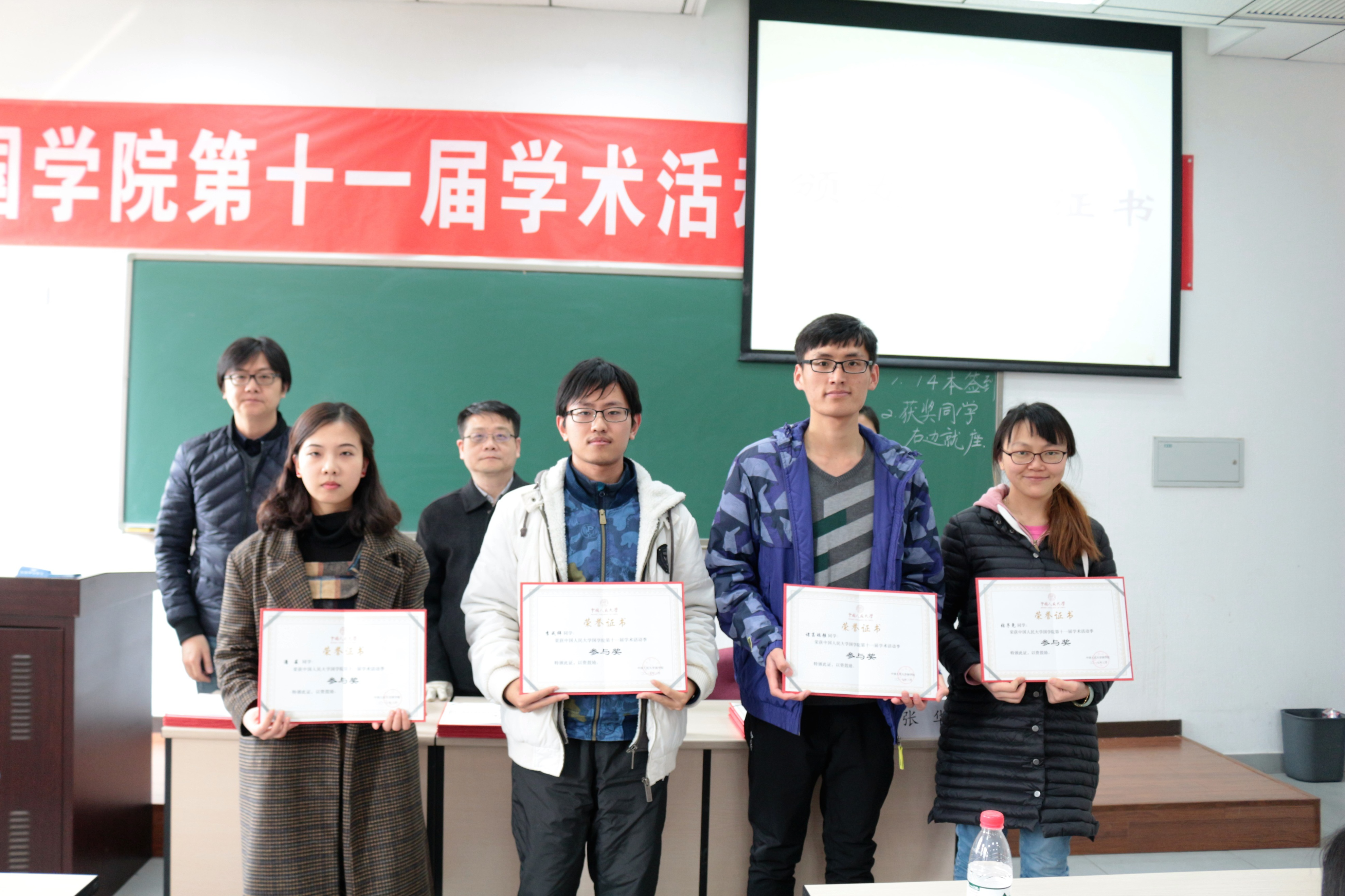 随后张华副书记宣读了获奖名单,并与梁涛副院长、李萌昀副教授一起为获奖同学、集体颁发证书。本届学术活动季共收到学术类论文24篇,文学创作类作品22首(篇)。共评出学术类一等奖2名,二等奖10名,三等奖9名;文学创作类一等奖1名,二等奖2名,三等奖2名;参与奖4名;优秀组织奖1名。(获奖名单附后)