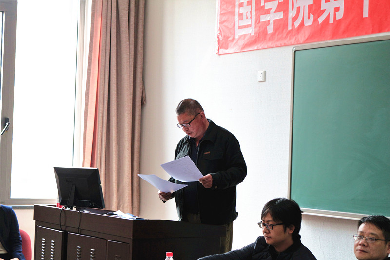 李肖教授代表西域教研室发言。他结合自己的学术背景,对四篇参赛论文的内容做了简要介绍,对作者的写作思路做了大致梳理,并着重介绍了几处亮点。李老师表示,西域组参赛论文数量较少,这多少令人有些遗憾。他鼓励同学们在今后进一步加强学术训练,积极参与论文大赛,并从中获得提高。
