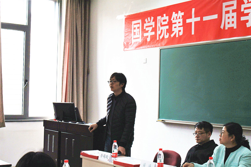 随后,李萌昀副教授介绍了大赛的评奖工作。学术论文组按照专业领域主要分为四组,分别是文学组、史学(含小学)组、经学与子学组、西域组,各组的本科生论文与研究生论文分别进行评审。文学创作组由国文教研室负责评审,不区分本科生和研究生。