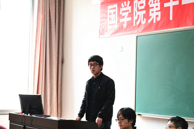 张耐冬老师代表国史教研室(含小学)进行点评。他首先表示,获奖论文共同的优点是符合论文写作的通行格式,结构完整规范。在对每篇论文进行评析后,张老师提出,希望同学们在今后的研究中不要拘泥于名目的考辨,还应关照所研究领域未来的研究方向。他还特别指出,本次参赛论文的鲜明特点是将历史学与语言学相结合进行研究,这是学术界希望看到的研究方法。