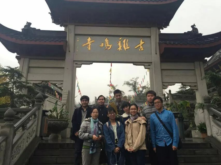 鸡鸣寺:从栖霞山返回后,我们去了著名佛寺——鸡鸣寺。鸡鸣寺位于南京市玄武区鸡笼山东麓山阜上,始建于西晋,是南京最古老的梵刹之一,自古有“南朝第一寺”,“南朝四百八十寺”之首寺的美誉,是南朝时期中国的佛教中心。在烟雨寒风中,我们从“鸡鸣寺”的牌坊而入,侧身而望,红黄的佛寺建筑依山而建,层层叠叠,让人瞬间领略了“南朝四百八十寺,多少楼台烟雨中”的意境,着实动人。梁武帝多次舍身鸡鸣寺,更让这座佛寺在历史中具有非凡的意义。寺中有药师佛塔、观音殿、大雄宝殿等等建筑,更有“胭脂井”——传说隋开皇九年,隋文帝发兵灭陈,隋军攻入台城之时,陈后主与其妃张丽华、孔贵嫔藏入此井,后被隋兵发现而成为俘虏,故又名辱井。俗云“石井栏石脉”,以帛拭之,作胭脂色,故名“胭脂井”,又叫“辱井”。我们入寺时,正碰上大雄宝殿内众尼僧在进行诵经活动,富有节奏韵律的诵经声伴着深秋的雨水,袅袅环绕着鸡鸣寺,让人不禁心静如水。
