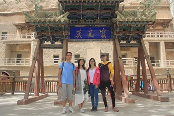 8月22日至24日三天,游学团队在本次游学的重点——敦煌分东、中、西三线进行了参观。参观了西千佛洞、榆林窟壁、莫高窟壁画。其中莫高窟数字展厅推出的球幕影院,运用高科技手段全方位展示不宜开放的洞窟内部壁画情景,使人耳目一新。此外,还参观了玉门关遗迹、汉长城遗址,游览了风蚀雅丹地貌、鸣沙山、月牙泉,晚上又领略了热闹繁华的沙洲夜市,全面贴近了这块神秘瑰丽而又历史厚重的土地。