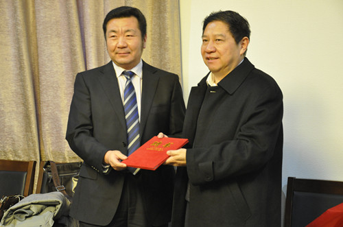 长期以来重视“大国学”理念、倡导基于多语种文献的边疆民族研究而取得的成绩,并祝愿卫拉特学•托忒学能够成为西域所新的研究热点。乌云毕力格教授简要介绍了中心成立缘起,并宣布聘请中央民族大学蒙古语言文学系叶尔达教授为中心主任。中国社会科学院仁钦道尔吉研究员、新疆和布克赛尔蒙古族自治县才布格加甫县长先后致辞,简要介绍了卫拉特蒙古历史与文化、卫拉特学与托忒学研究现状以及成立研究中心的现实意义。杨慧林院长给叶尔达教授颁发了聘请书。新疆大学、新疆师范大学、新疆社会科学等单位向西域历史语言研究所赠送了锦旗及卫拉特学相关研究著述。