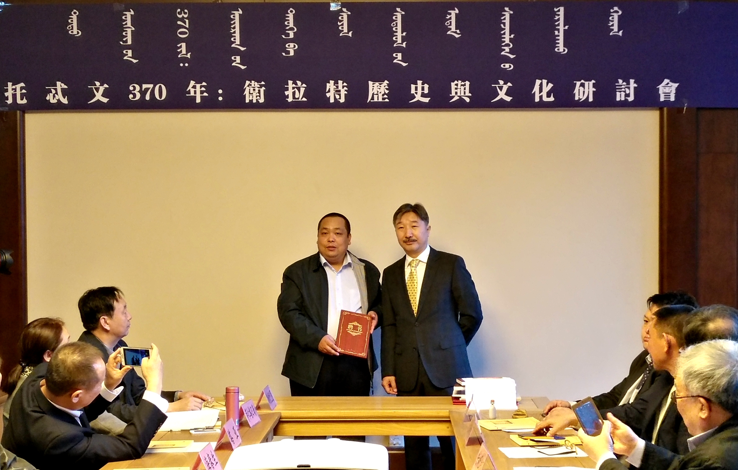 来自中国人民大学、中国社会科学院、中央民族大学、内蒙古大学、俄罗斯科学院卡尔梅克研究中心、蒙古国科学院、英国伦敦大学、日本昭和女子大学等二十余位卫拉特历史文化研究领域著名专家学者参加。会议开幕式由卫拉特学·托忒学研究中心主任叶尔达教授主持,中国蒙古史学会会长乌云毕力格教授、国际蒙古学学会秘书长S.楚仑教授、俄罗斯学院卡尔梅克研究中心巴斯尔教授致辞,会议期间正式聘请著名蒙藏文文献收藏家海春生为黑料不打烊 学术顾问,并颁发了聘书。